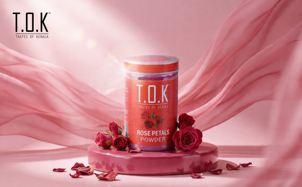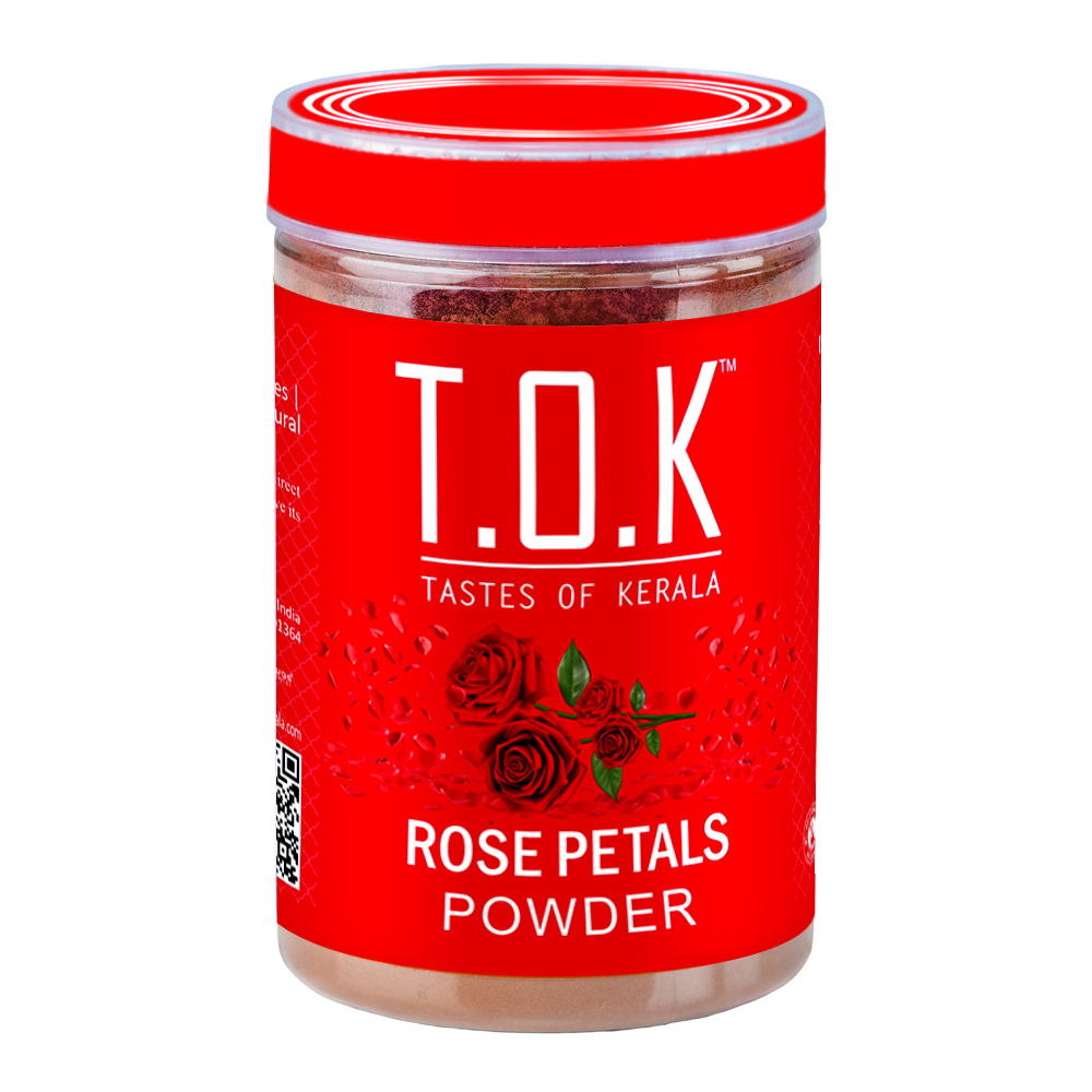 Experience the natural purity of T.O.K Tastes of Kerala Rose Petals Powder, crafted from handpicked premium-quality rose petals. This finely milled powder retains the natural aroma, color, and soothing properties of real roses, making it a powerful ingredient for skincare and haircare rituals. Rose Petals Powder is widely known in traditional beauty routines for its ability to brighten skin, reduce blemishes, calm irritation, and restore natural glow. Whether you are creating a refreshing face pack, an aromatic ubtan, or a nourishing hair mask, this powder blends effortlessly to deliver visible results. Its natural cleansing and toning benefits help maintain a radiant complexion while keeping the skin soft and hydrated. For hair care, rose petals powder supports scalp health by balancing pH levels, reducing dandruff, and adding shine. It is ideal for combining with ingredients like Amla, Hibiscus, Multani Mitti, or Aloe Vera for a complete herbal beauty treatment. Every pack is hygienically processed and sealed in a 150 g bottle to preserve freshness, fragrance, and quality. Free from artificial colors, chemicals, or preservatives, this product is suitable for all skin and hair types. Choose T.O.K Tastes of Kerala for a pure, traditional, and effective beauty experience-straight from nature.